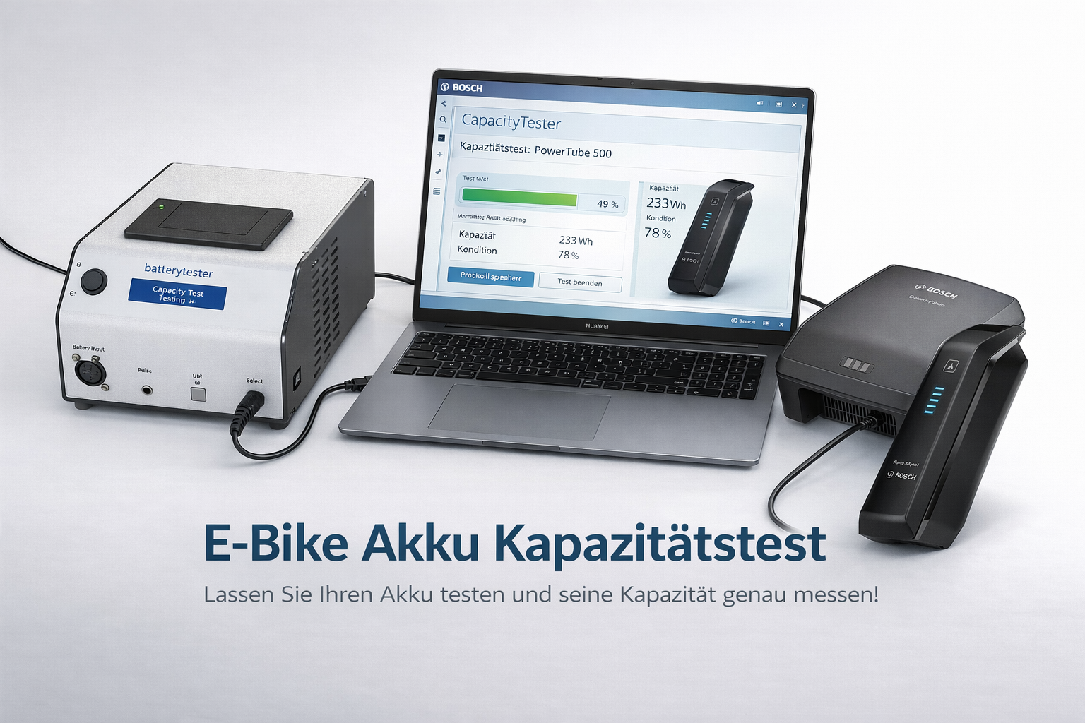 Diagnose, Kapazitätstest und Rekalibrierung für Ihren E-Bike Akku. Wir testen Akkus von Bosch, Impulse, Panasonic, Yamaha, Shimano und TranzX.